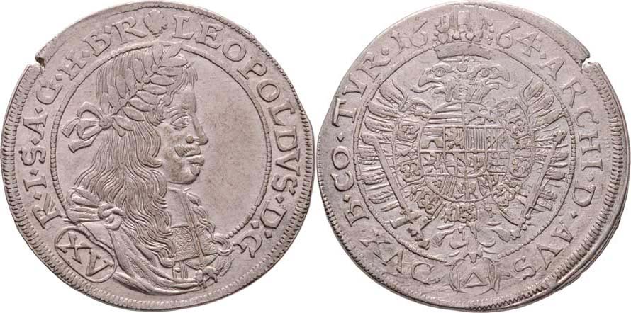 XV Krejcar 1664, Neuburg a.I.-Triangel, Höll.61.1.17, Nech.2033, M-A.163, 6.774g, dr.vada materiálu na hraně, nep.nedor., pěkná patina R!