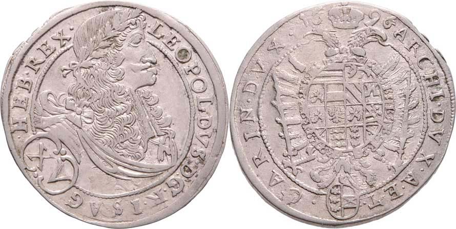 XV Krejcar 1696, Svatý Vít-Strauss, Höll.96.1.1, Nech.2531, M-A.193, 5.941g, nep.vady materiálu na hraně, nep.nedor., pěkná patina