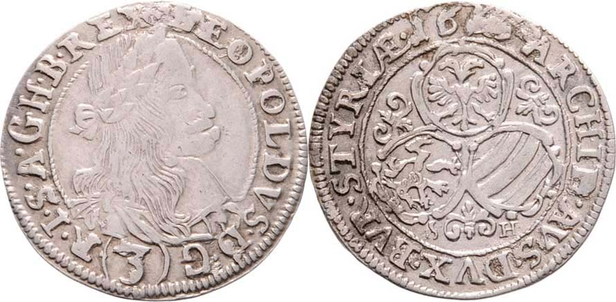 3 Krejcar 1665 SH, Štýrský Hradec-Haydt, Nech.2206, M-A.164, 1.661g, vady materiálu, vady razidla, patina