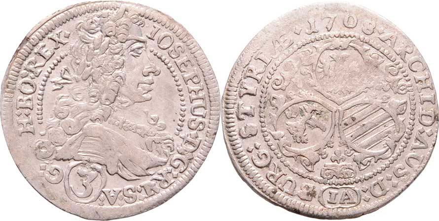3 Krejcar 1708, Št.Hradec-Aigmann, M-A.207, 1.328g, nep.nedor., patina
