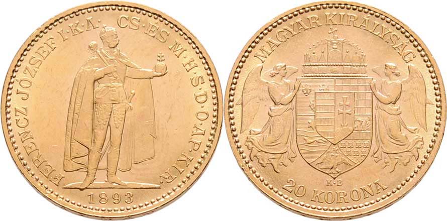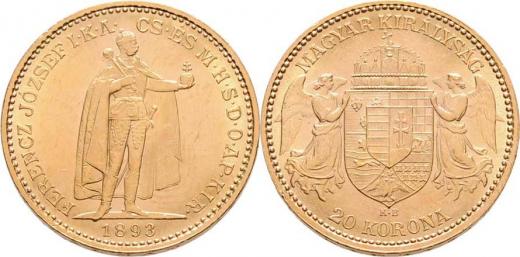 20 Koruna 1893 KB, 6.776g, nep.hr., nep.rysky