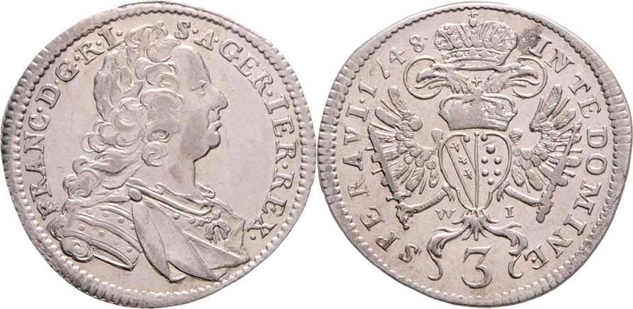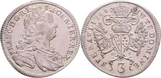 3 Krejcar 1748 W-I, Vídeň, M-A.249, N.14, 1.668g, nep.rysky R!