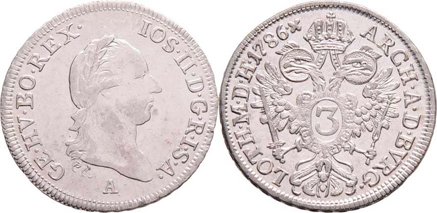 3 Krejcar 1786 A, Vídeň, P.34, M-A.288, 1.659g, nep.hr., nep.rysky R!
