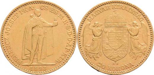 20 Koruna 1893 KB, 6.767g, dr.hr., dr.rysky