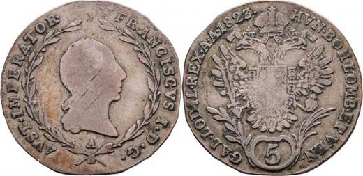 5 Krejcar 1823 A, Vídeň, 2.172g, nedor., just., pěkná patina RR!