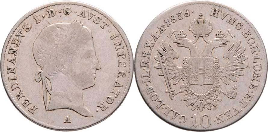 10 Krejcar 1836 A - FERDINANDVS, Vídeň, 3.823g, nep.hr., nep.rysky, patina R!