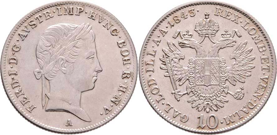 10 Krejcar 1843 A, Vídeň, 3.871g, nep.rysky, pěkná patina