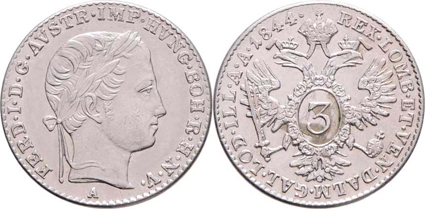3 Krejcar 1844 A, Vídeň, 1.735g, nep.rysky, skvrnka