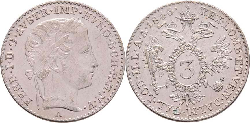 3 Krejcar 1846 A, Vídeň, 1.679g, nep.hr., nep.rysky, patina