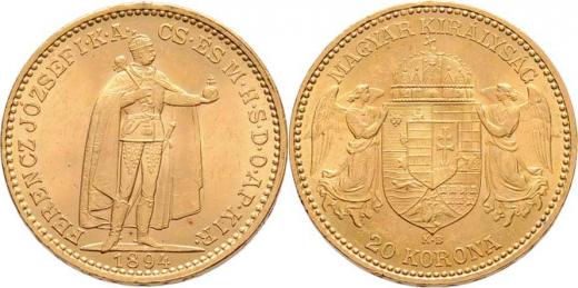20 Koruna 1894 KB, 6.775g, dr.hr., nep.rysky, pěkná patina, téměř
