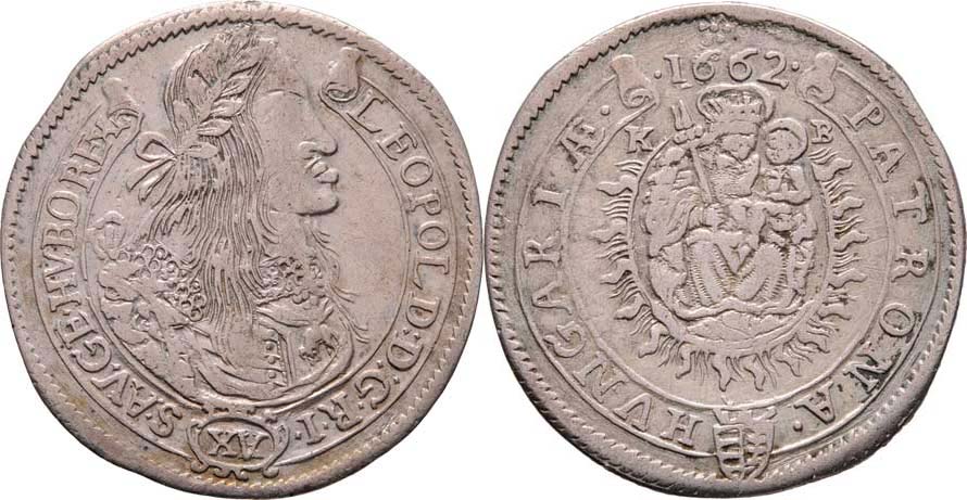 XV Krejcar 1662 KB, Kremnica, Nech.1148, Husz.1422, 5.169g, kraj.střížek, nep.nedor., pěkná patina
