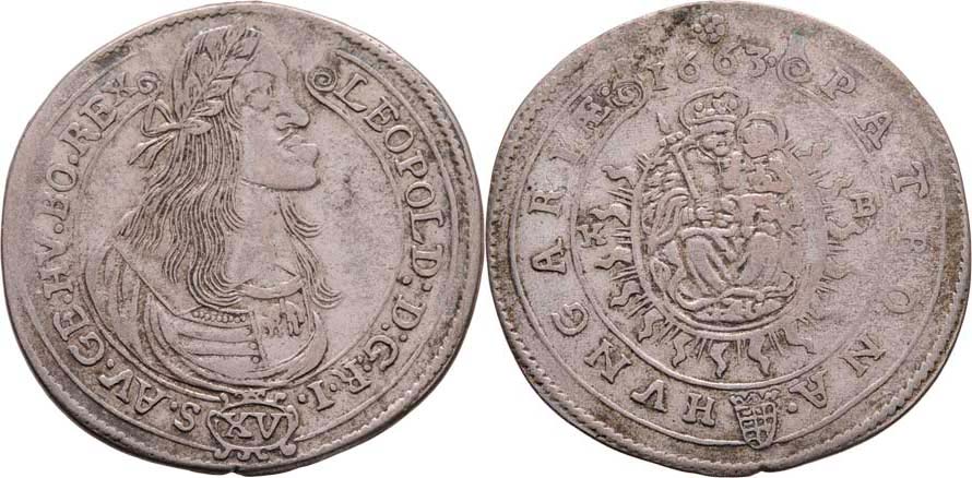 XV Krejcar 1663 KB, Kremnica, Höll.63.1.2, Husz.1423, Nech.1150, 6.095g, nep.exc., nep.nedor., patina