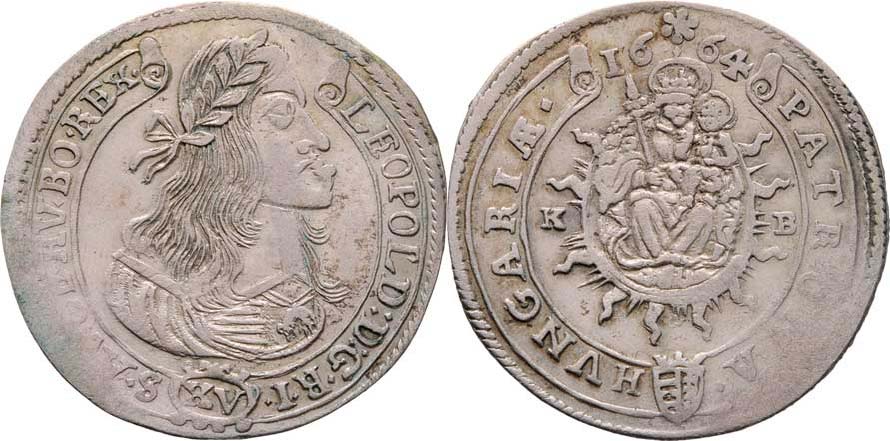 XV Krejcar 1664 KB, Kremnica, Nech.1151, Husz.1423, 5.992g, nedor., pěkná patina