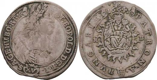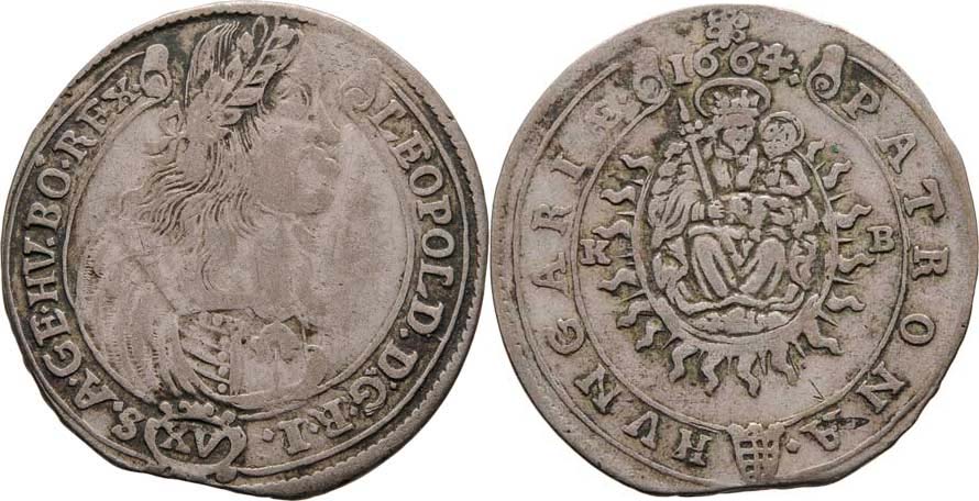 XV Krejcar 1664 KB, Kremnica, Höll.64.1.6, Husz.1423, Nech.1151, 5.264g, krajový střížek, nedor., patina