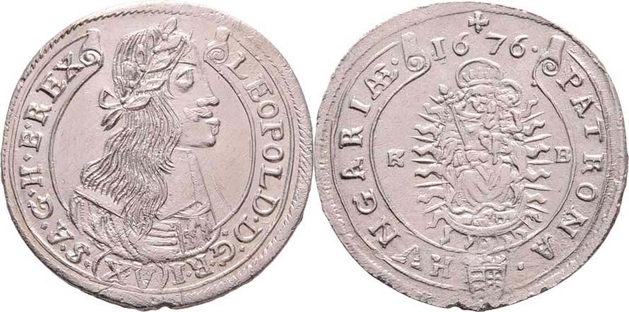 XV Krejcar 1676 KB, Kremnica, Höll.76.1.2, Husz.1423, Nech.1157, 5.569g, dr.vady materiálu na hraně, vlas.rysky