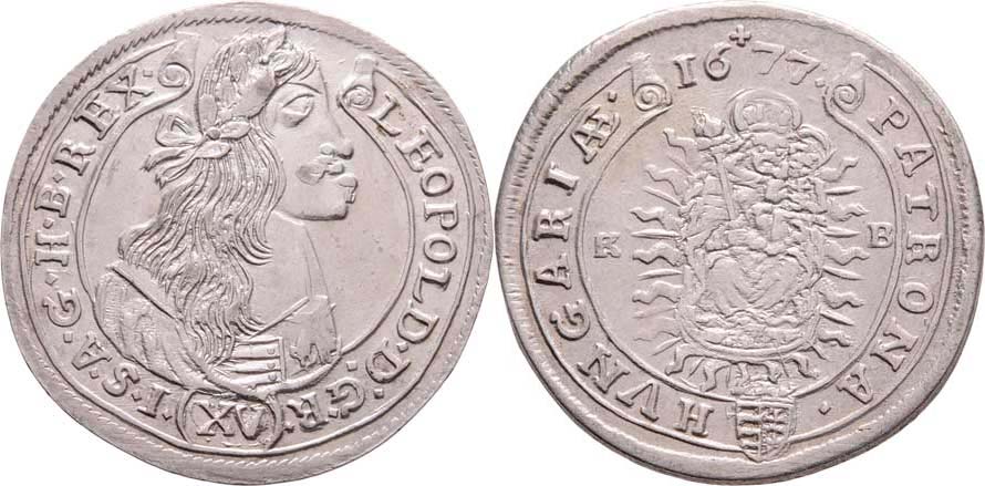 XV Krejcar 1677 KB, Kremnica, Höll.77.1.3, Nech.1160, Husz.1425, 6.217g, nep.nedor., pěkná patina