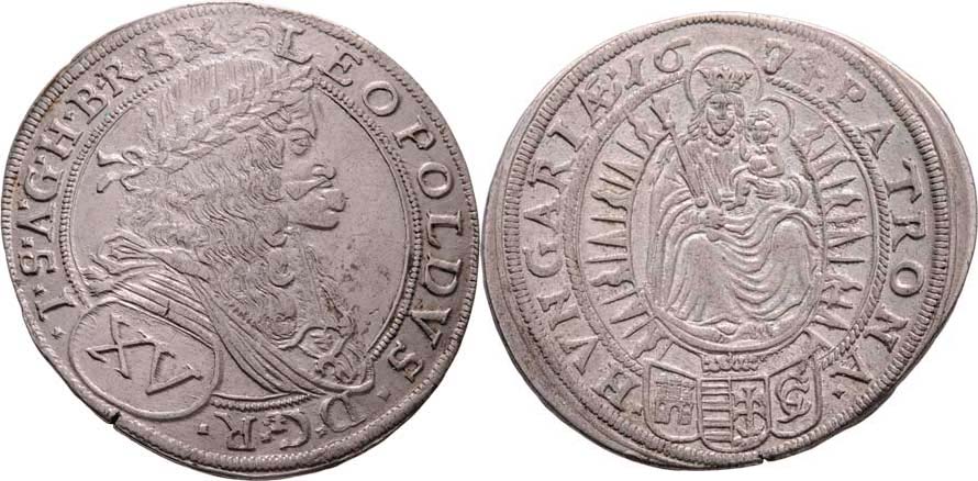 XV Krejcar 1674 GC, Bratislava-Cetto, Höll.75.1.13, Husz.1441, Nech.1644, 6.327g, oválný střížek, pat. R!