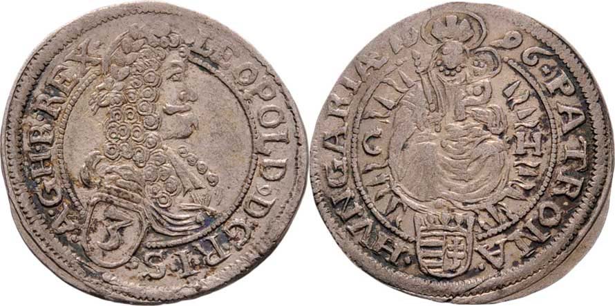 3 Krejcar 1696 CH, Bratislava-Hunger, Nech.1658, Husz.1477, 1.721g, mírně exc., patina, téměř R!