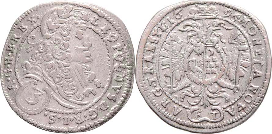 3 Krejcar 1696 FT, Sibiň-nezn.mincmistr, Nech.1751, 1.787g, nep.vady materiálu, nep.vady razidla RR!