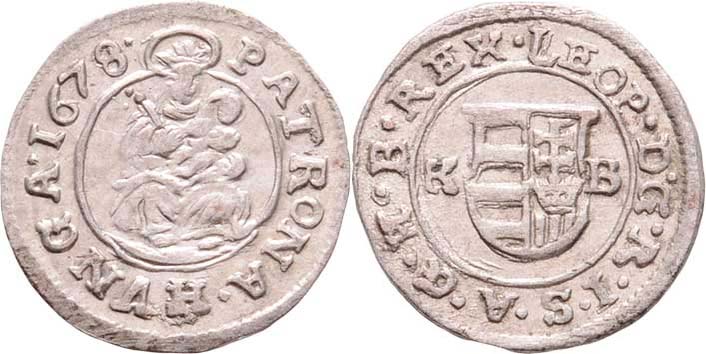 Denár 1678 KB, Kremnica, Nech.1282, Husz.1508, 0.622g, pěkná patina, téměř