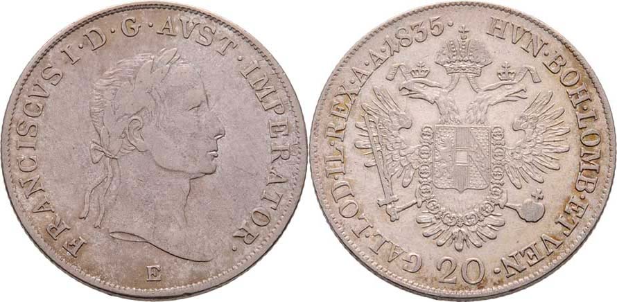 20 Krejcar 1835 E, Karlovský Bělehrad, 6.619g, nep.hr., nep.rysky, pěkná patina R!