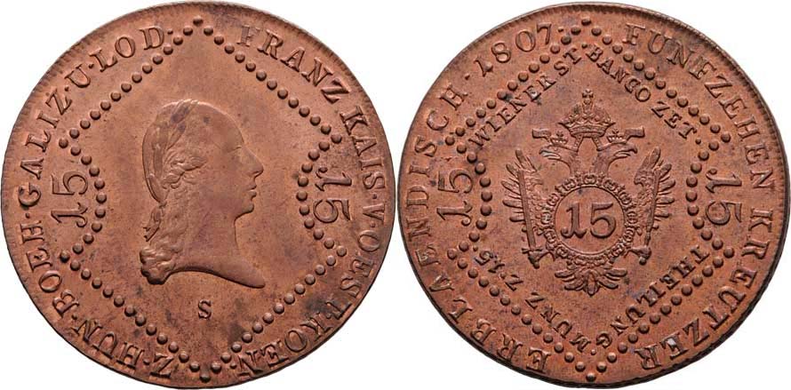 Cu 15 Krejcar 1807 S, Smolník, 13.077g, pěkná patina