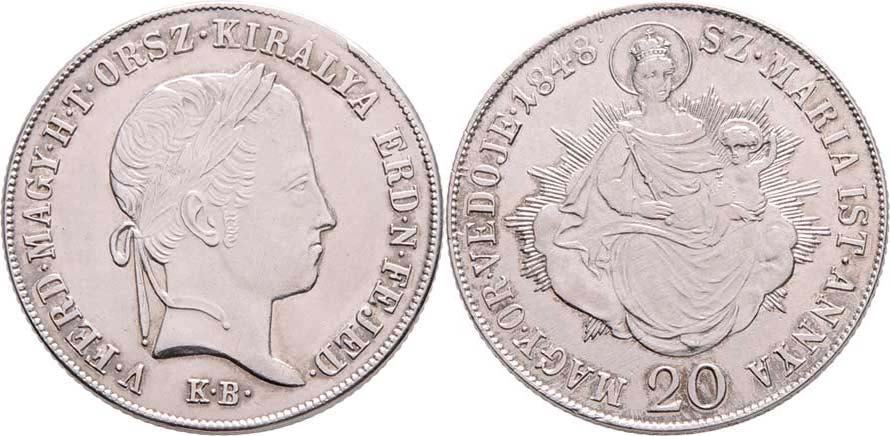 20 Krejcar 1848 KB - s madonou a maďarským opisem (revoluční), 6.679g, nep.hr., nep.rysky, pěkná patina