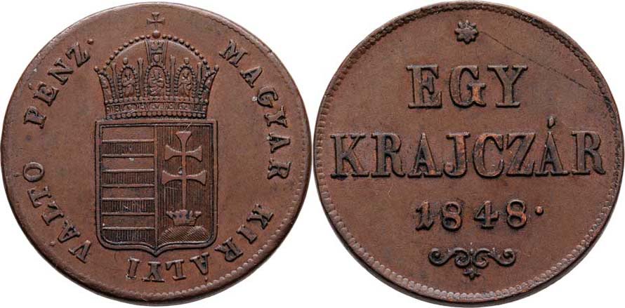 Cu Krejcar 1848 - maďarský opis a nápis (revoluční vydání), 8.612g, nep.hr., nep.rysky, pěkná patina