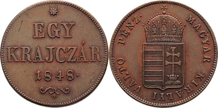Cu Krejcar 1848 - maďarský opis a nápis (revoluční vydání), 8.718g, nep.rysky, pěkná patina, téměř