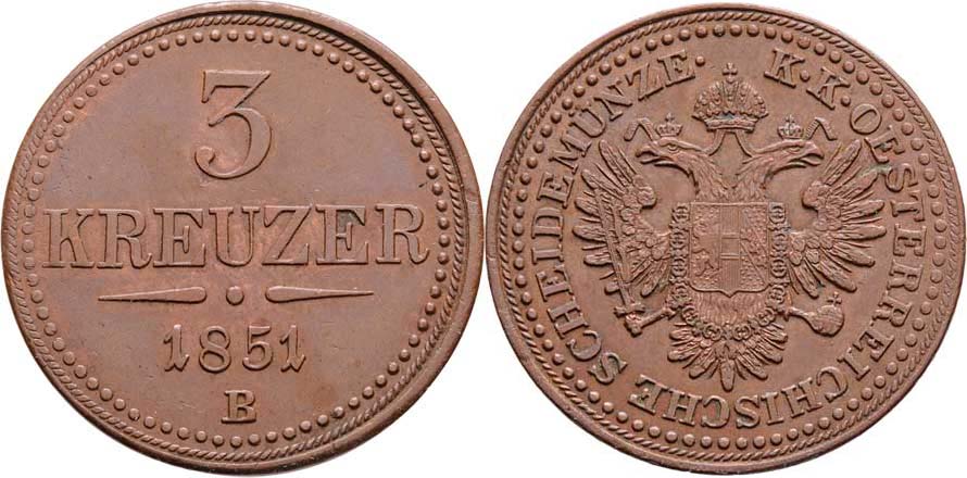 3 Krejcar 1851 B, 16.002g, nep.exc., dr.hr., pěkná patina