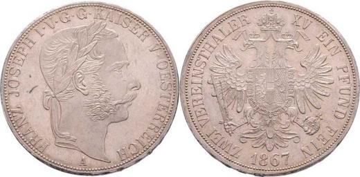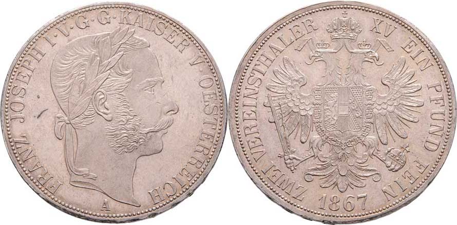 2 Tolar spolkový 1867 A (pouze 8.300 ks), 36.940g, nep.hr., dr.rysky, patina RR!