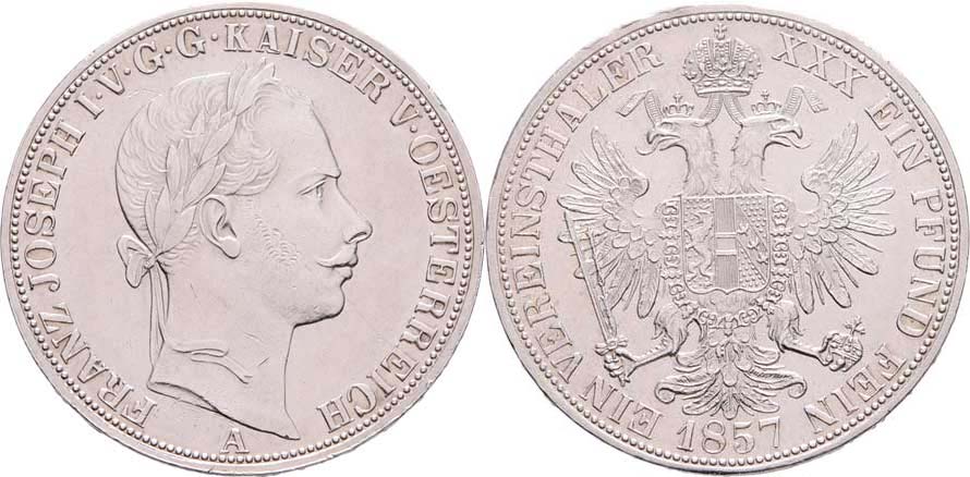 Tolar spolkový 1857 A, 18.539g, nep.hr., nep.rysky R!
