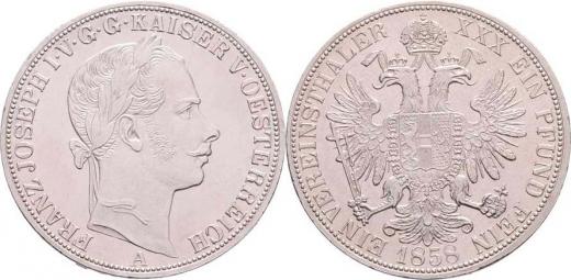 Tolar spolkový 1858 A, 18.485g, nep.hr., nep.rysky v aversu, téměř