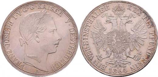 Tolar spolkový 1864 A, 18.490g, nep.hr., nep.rysky, krásná patina, téměř