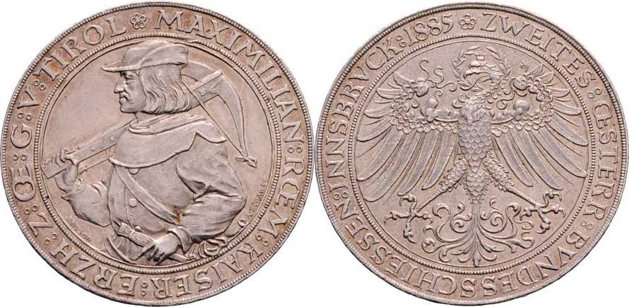 2 Zlatník 1885 - 2.celorakouské střelby v Innsbrucku, 22.143g, nep.hr., nep.rysky, pěkná patina, téměř R!