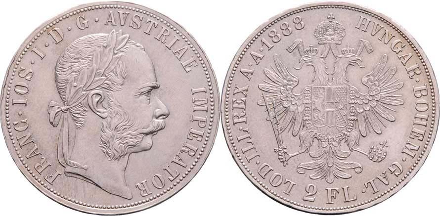 2 Zlatník 1888, 24.726g, nep.hr., nep.rysky, pěkná patina, téměř