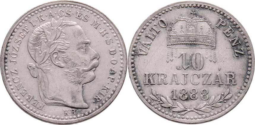 10 Krejcar 1888 KB, 1.602g, nep.hr., nep.rysky skvrnky, patina