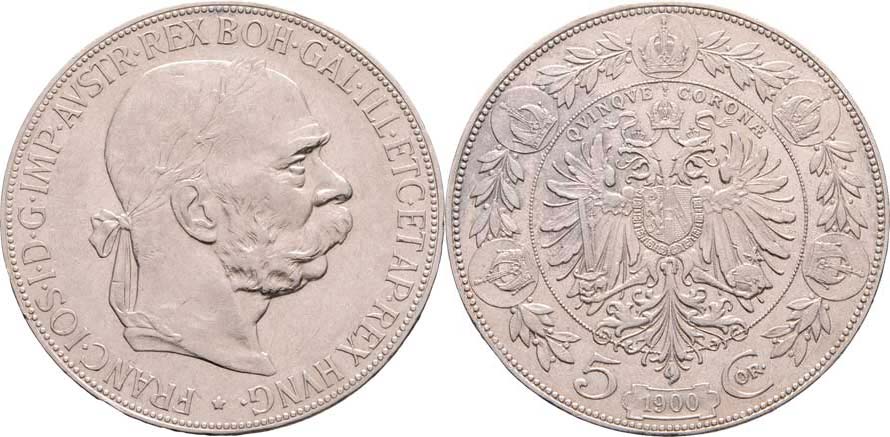 5 Koruna 1900, 23.926g, dr.hr., dr.rysky