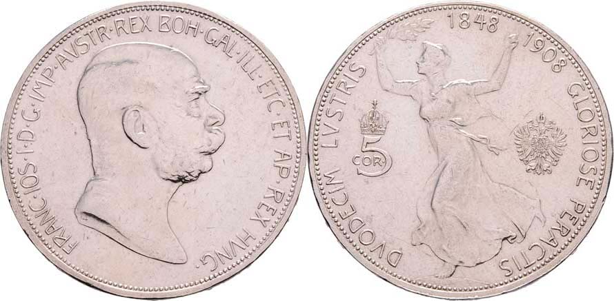 5 Koruna 1908 - jubilejní, 23.982g, nep.hr., nep.rysky, téměř