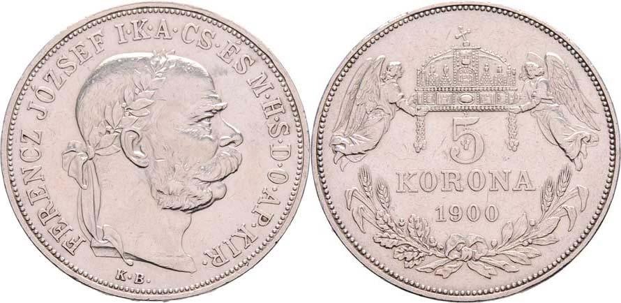 5 Koruna 1900 KB, 23.943g, dr.hr., dr.rysky