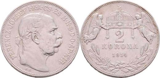 2 Koruna 1914 KB, 10.031g, nep.hr., nep.rysky R!