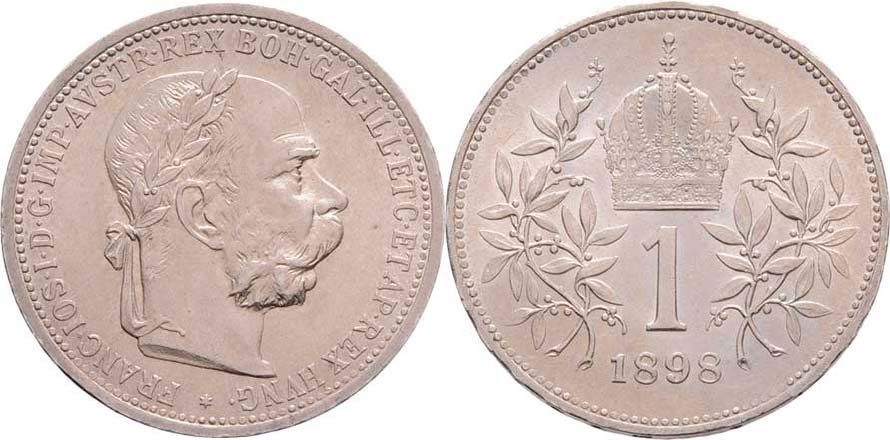 Koruna 1898, 4.972g, nep.hr., nep.rysky, pěkná patina, téměř