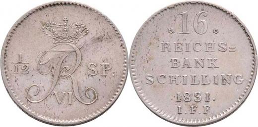 16 Schilling = 1/12 Tolaru 1831 IFF, Cr.22a (Ag500), 4.181g, nep.hr., nep.rysky, patina, téměř
