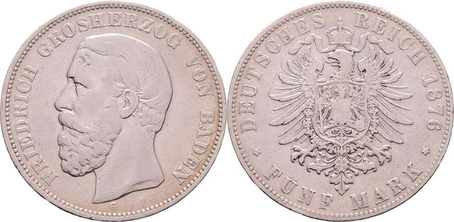 5 Marka 1876 G, KM.263.1 (Ag900), 27.449g, dr.hr., dr.rysky