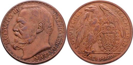 3 Marka 1913 - zkušební ražba, měď 33mm, 11.737g, KM.neuvádí, Nesign.(K.Goetz), pěkná patina R!