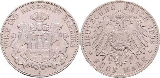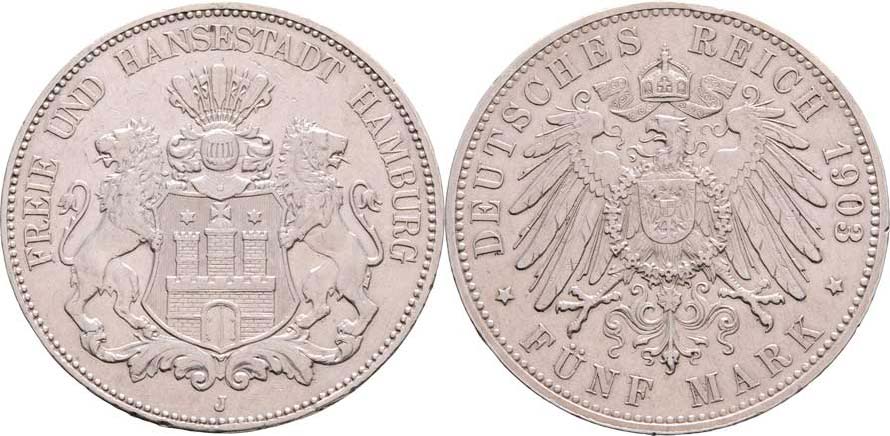5 Marka 1903 J, KM.293 (Ag900), 27.600g, hr., dr.rysky, pěkná patina