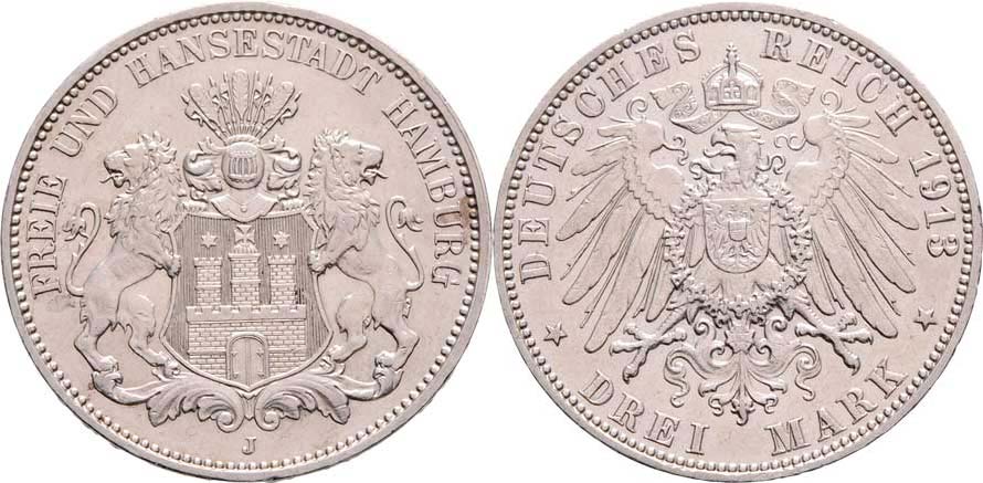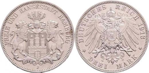 3 Marka 1913 J, KM.296 (Ag900), 16.615g, nep.hr., nep.rysky, skvrnka, téměř