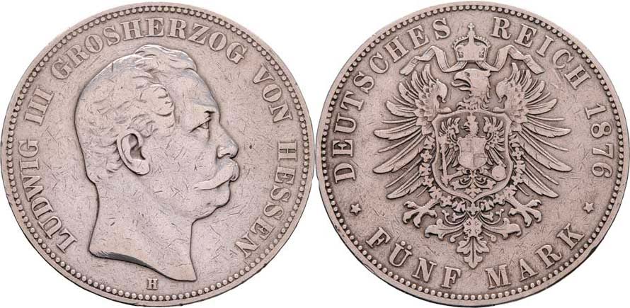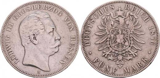 5 Marka 1876 H, KM.353 (Ag900), 27.503g, dr.hr., dr.rysky, patina