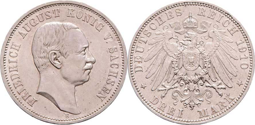 3 Marka 1910 E, KM.1267 (Ag900), 16.617g, nep.hr., nep.rysky, pěkná patina, téměř