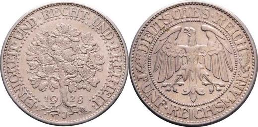 5 Marka 1928 J, KM.56 (Ag500), 24.699g, nep.hr., nep.rysky, pěkná patina